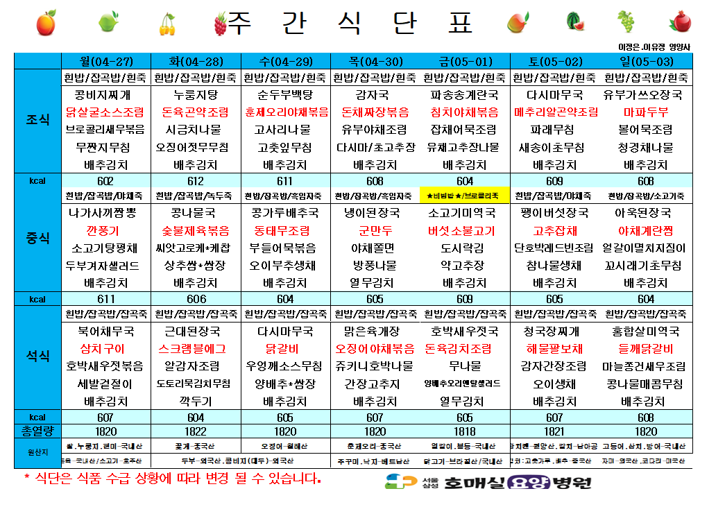 다음글 4월 넷째주 식단표