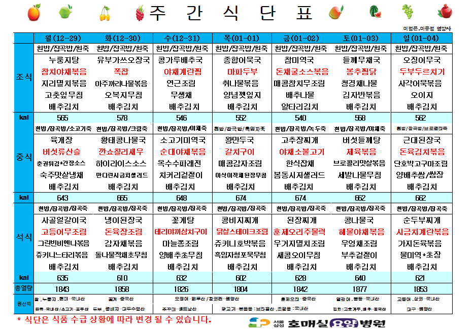 다음글 12월 넷째주 식단표